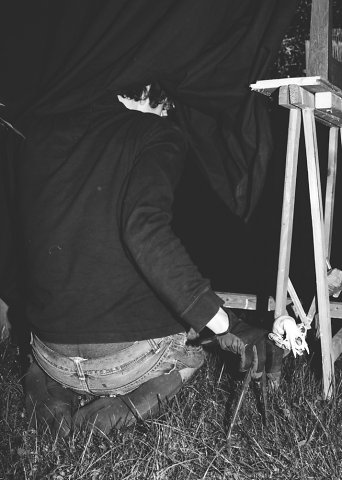 EUROPA, DEUTSCHLAND, BERLIN, Puppenspielstudent Kaspar Weith probt sein Stück im Garten vor seiner Werkstatt aufgenommen in seiner Werkstatt in Berlin Köpenick, 07.06.2014, (c) 2014 Kien Hoang Le / Agentur FOCUS