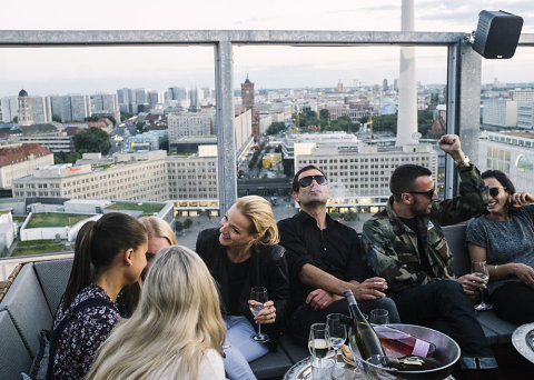EUROPA, DEUTSCHLAND, BERLIN, Alexanderplatz, Auf der Terasse mit Sicht auf den Alexanderplatz zur Wiedereröffnung des Weekendklubs in der Alexanderrstrasse 7,, 06.06.2014, (c) 2014 Kien Hoang Le / Agentur FOCUS