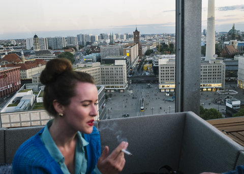 EUROPA, DEUTSCHLAND, BERLIN, Alexanderplatz, Auf der Terasse mit Sicht auf den Alexanderplatz zur Wiedereröffnung des Weekendklubs in der Alexanderrstrasse 7,, 06.06.2014, (c) 2014 Kien Hoang Le / Agentur FOCUS